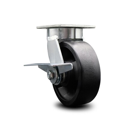 Kingpinless Glass Filled Nylon Swivel Top Plate Caster w/6" x 2" Black Wheel & Side Lck Brake - 1250 lbs Capacity/Caster - Service Caster Brand
