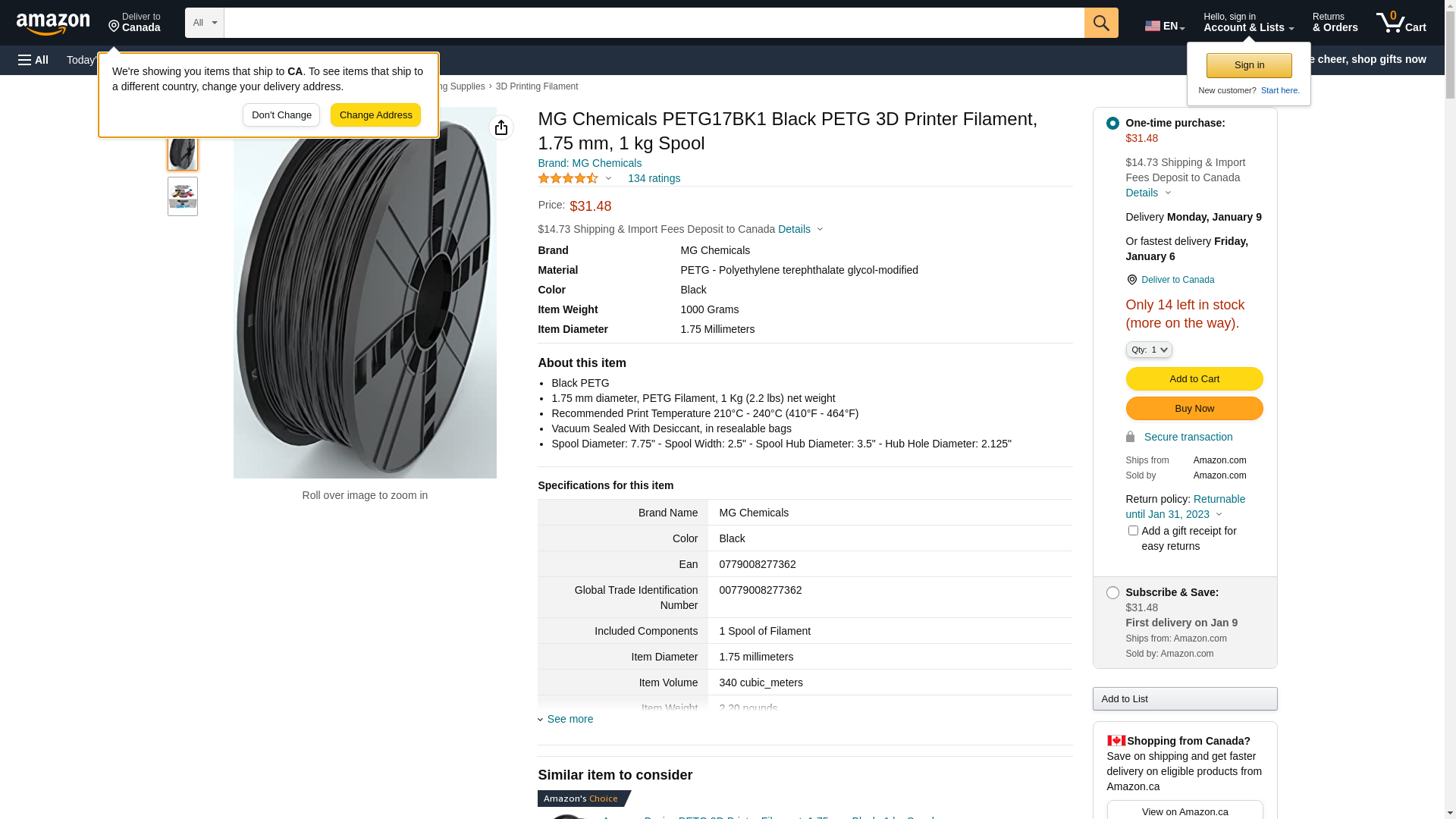 Mg Chemicals 3D Printer Filament, 1.75mm, Petg, Black - PETG17BK1