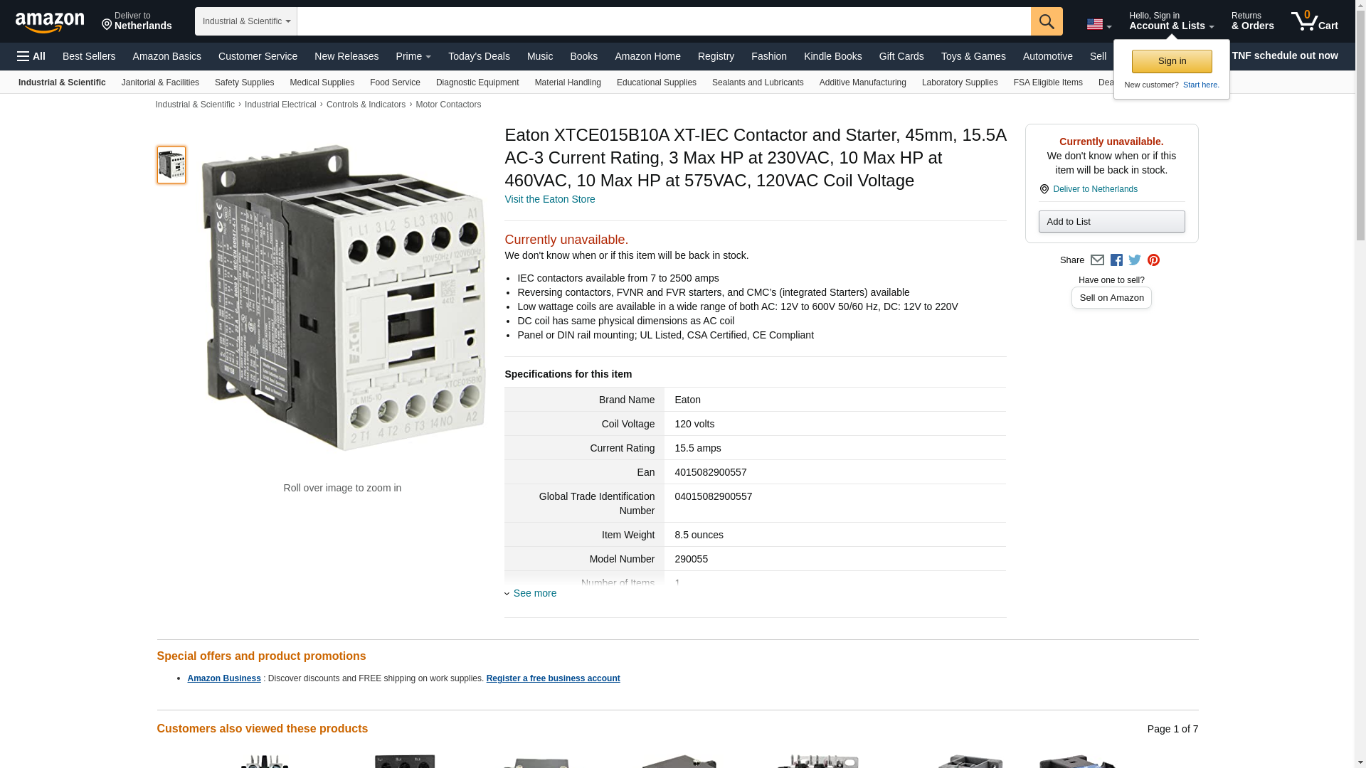 - Eaton XTCE015B10A IEC Magnetic Contactor,120VAC,15A,1NO,3P