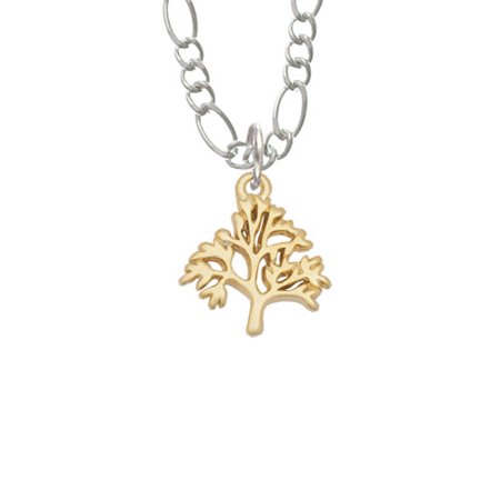 Gold Tone Medium Tree of Life Figaro Chain Charm Necklace. Gold Tone Medium Tree of Life is approximately 0.66 x 0.72 x 0.1 inches (HxWxD) not including loop. Same on both sides. Figaro Link Chain Necklace is 17.5 Inches plus 2 Inch Extender. Lobster Claw Clasp. Diamond-cut Figaro chain is approx. 3mm wide. PLEASE NOTE: Our products are lead safe, but are not intended for children 14 years and younger.