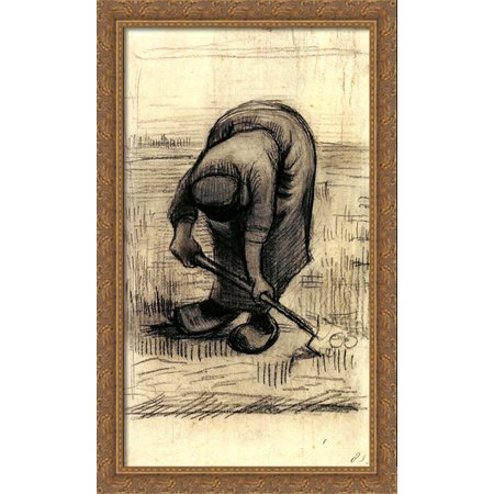 Peasant Woman Lifting Potatoes 30x28 Large Gold Ornate Wood Framed Canvas Art by Vincent van Gogh