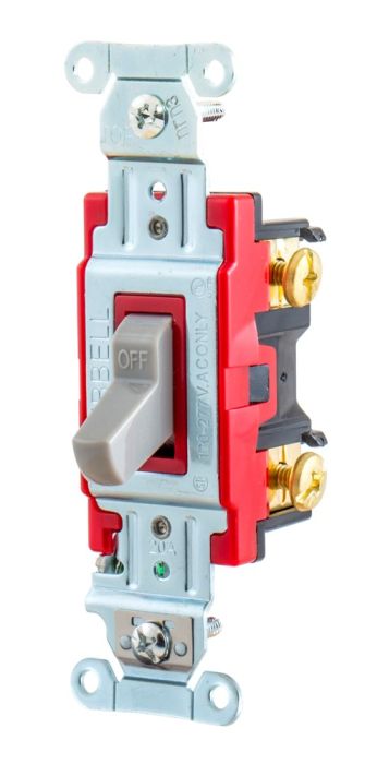Toggle Switch, General Purpose, 20 Amp, 120/277 VAC, 1P1W, Back & Side Wired, Gray