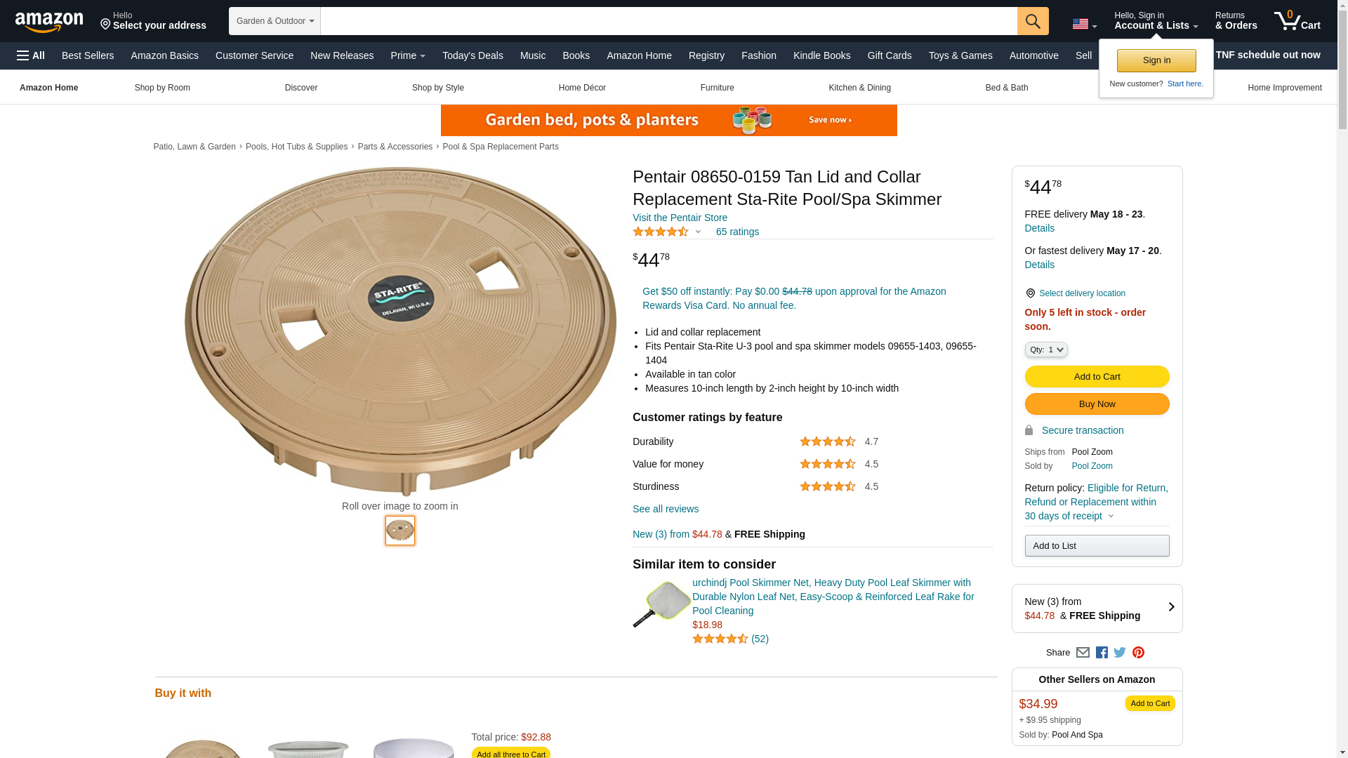 This lid and collar is designed to use with Pentair Sta-Rite U-3 pool and spa skimmer models 09655-1403, 09655-1404.