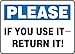 Accuform MHSK931VP Sign, Please IF You USE IT - Return IT!", 7" Length x 10" Width x 0.055" Thickness, Plastic, 7" x 10", Blue/Black on White