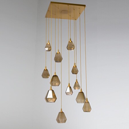 Hedra Pendant, Square, 12-Light, LED, Heritage Brass, Chilled Smoke Shade, 36.7"W (CHB0045-12-HB-CS-