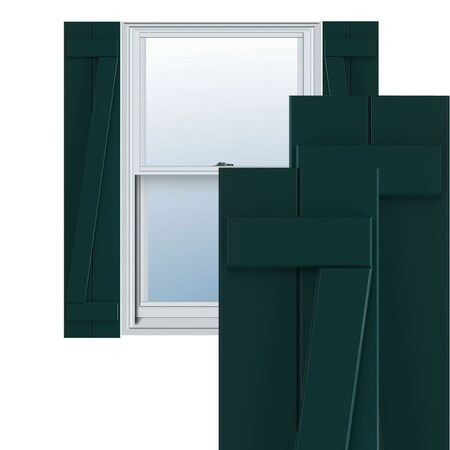 10 3/4"W x 39"H True Fit PVC Two Board Joined Board-n-Batten Shutters w/Z-Bar, Thermal Green (Per Pair - Hardware Not Included)
