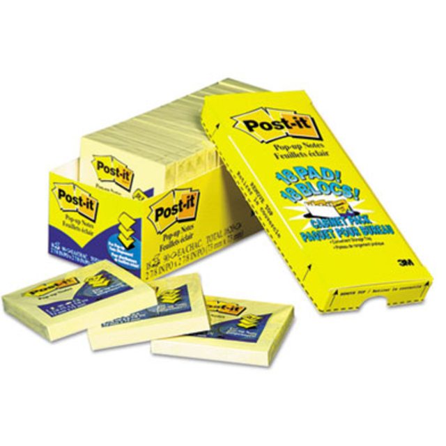 Post-it Pop-up Notes, 3 in x 3 in, 18 Pads, America's #1 Favorite Sticky Notes, Canary Yellow, Clean Removal, Recyclable (R330-18CP)
