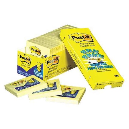 Post-it Pop-up Notes Original Canary Yellow Pop-up Refill Cabinet Pack, 3" x 3", Canary Yellow, 90 Sheets/Pad, 18 Pads/Pack