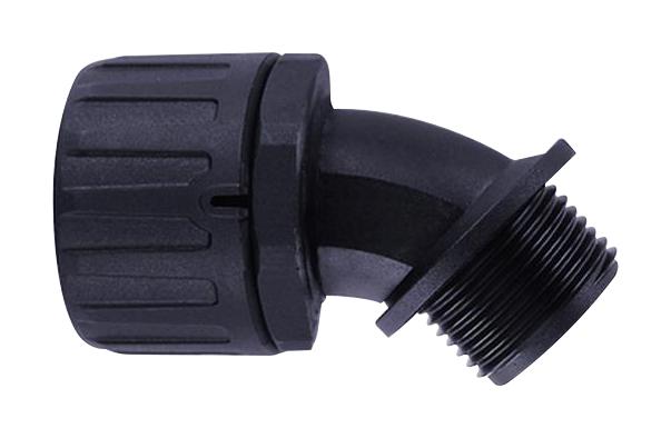 CONDUIT FITTING, 45 DEG, 1.5" DIA, PA66; Conduit Configuration:45 Degree; Trade Size:1-1/2"; Conduit Material:Nylon 6.6 (Polyamide 6.6); Conduit Colour:Black; External Length:106mm; IP / NEMA Rating:IP66 RoHS Compliant: Yes