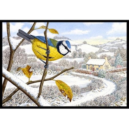 Caroline's Treasures ASA2188JMAT Winter Eurasian Blue Tit Doormat 24x36 Front Door Mat Indoor Outdoor Rugs for Entryway, Non Slip Washable Low Pile, 24H X 36W