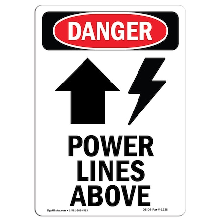 OSHA Danger Sign, Power Lines Above, 10in X 7in Rigid Plastic