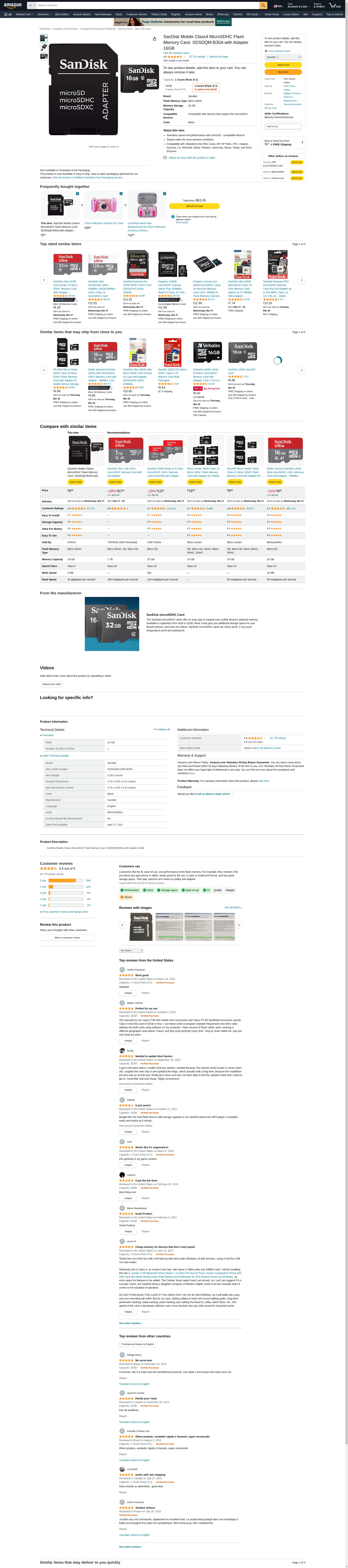 SanDisk SDSDQM-016G-B35A 16 GB Class 4 MicroSDHC Memory Card with SD Adapter
