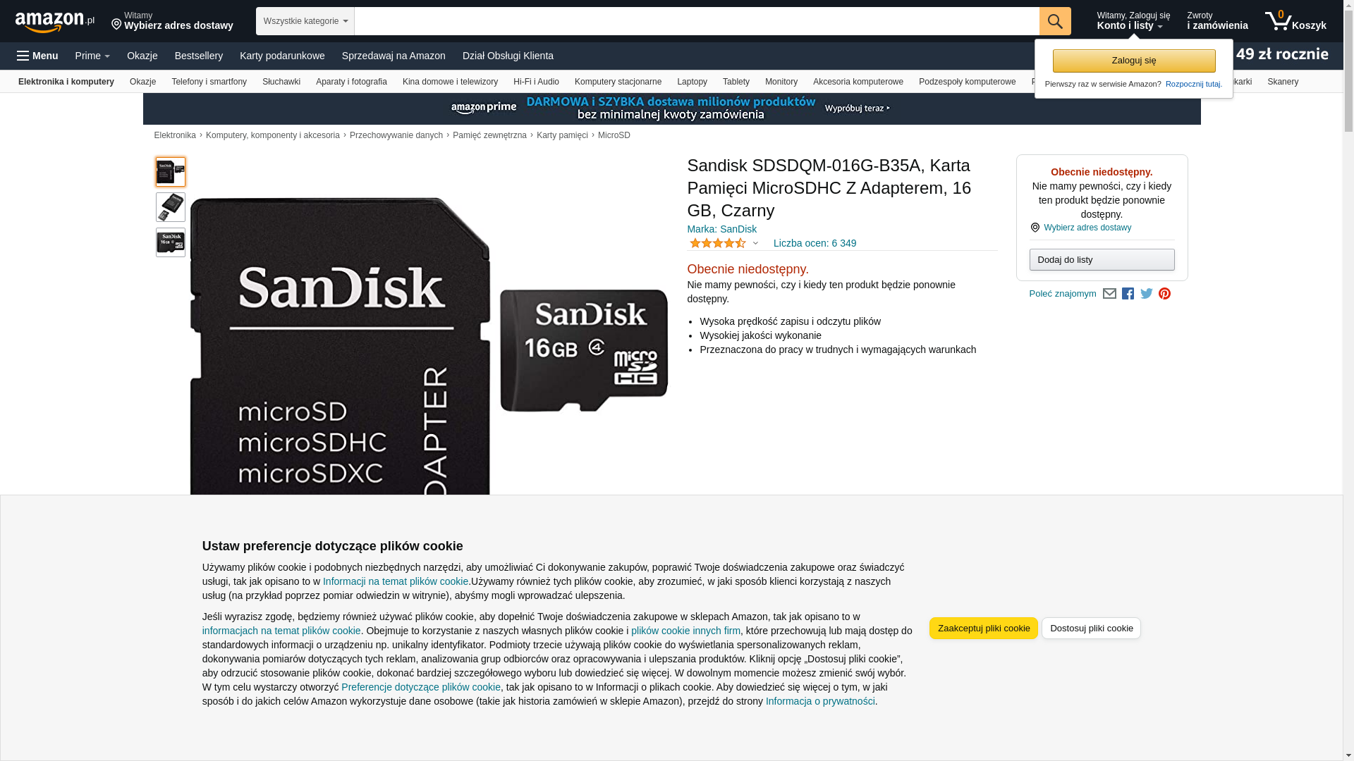 2DV7834 - SanDisk SDSDQM016GB35A 16 GB microSD High Capacity (microSDHC) - 1 Card