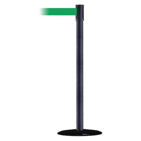 Slimline Post, Post Material Steel, Post Finish Black Wrinkle, Post Height 38 in, Post Dia. 2 in, Base Type Basic, Base Dia. 14 in, Base Material Steel, Number of Belts 1, Belt Length 13 ft, Belt Color Green, Indoor, ADA Compliance Yes