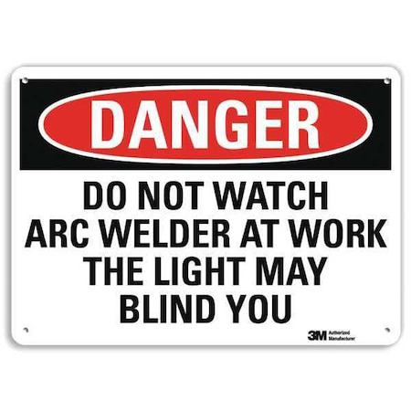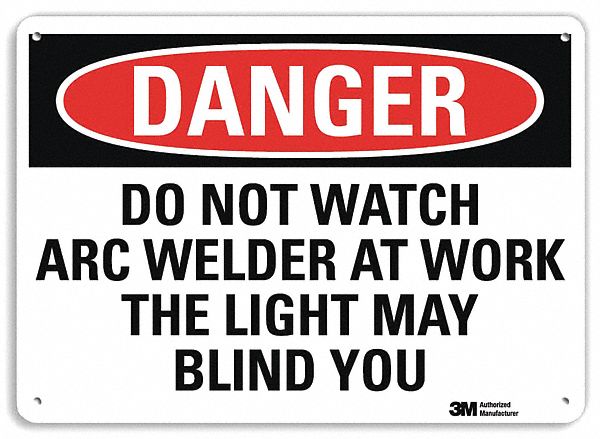 Danger Sign, Horizontal Rectangle, Number of Printed Sides 1, English, Sign Format Traditional OSHA, Sign Legend Do Not Watch Arc Welder At Work The Light May Blind You, Sign Legend Background Color White, Sign Legend Style Text