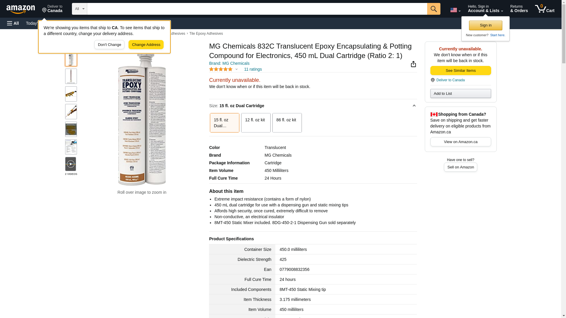 Mg Chemicals Epoxy Cartridge - Clear EnCapacitorsulating & Potting Compound (Ratio 2:1) Requires 8Dg-450-2-1 Dispensing Gun And Includes 8Mt-450 Mixing Tip / 15.5 Fl Oz Dual Cartridge - 832C-450ML