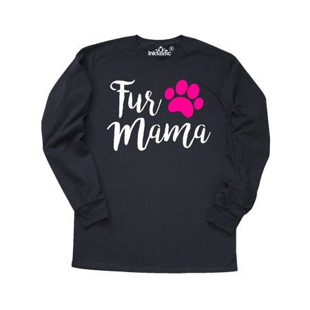 inktastic - Fur Mama Pink Pawprint White Long Sleeve T-Shirt Large Black 28070