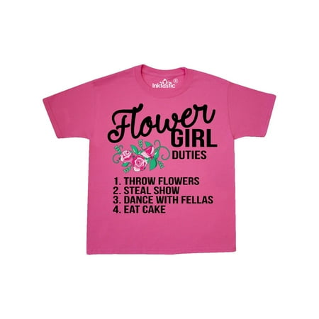 Flower Girl Wedding Duties Youth T-Shirt with a flowers and cute and funny list of "responsibilities" is the perfect idea for your flower girls in your spring wedding.
