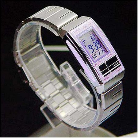 Classic styling and a full range of features make this Casio Futurist the perfect watch for any ensemble day or night With its stylish silver stainless steel band and chic digital dial this watch easily compliments a business suit then transitions as the perfect accessory for a night out on the town This timepiece offers reliable quartz movement and is protected by a durable mineral crystal Additional features include alarm features water resistance to 30 meters day and date display light and measures seconds