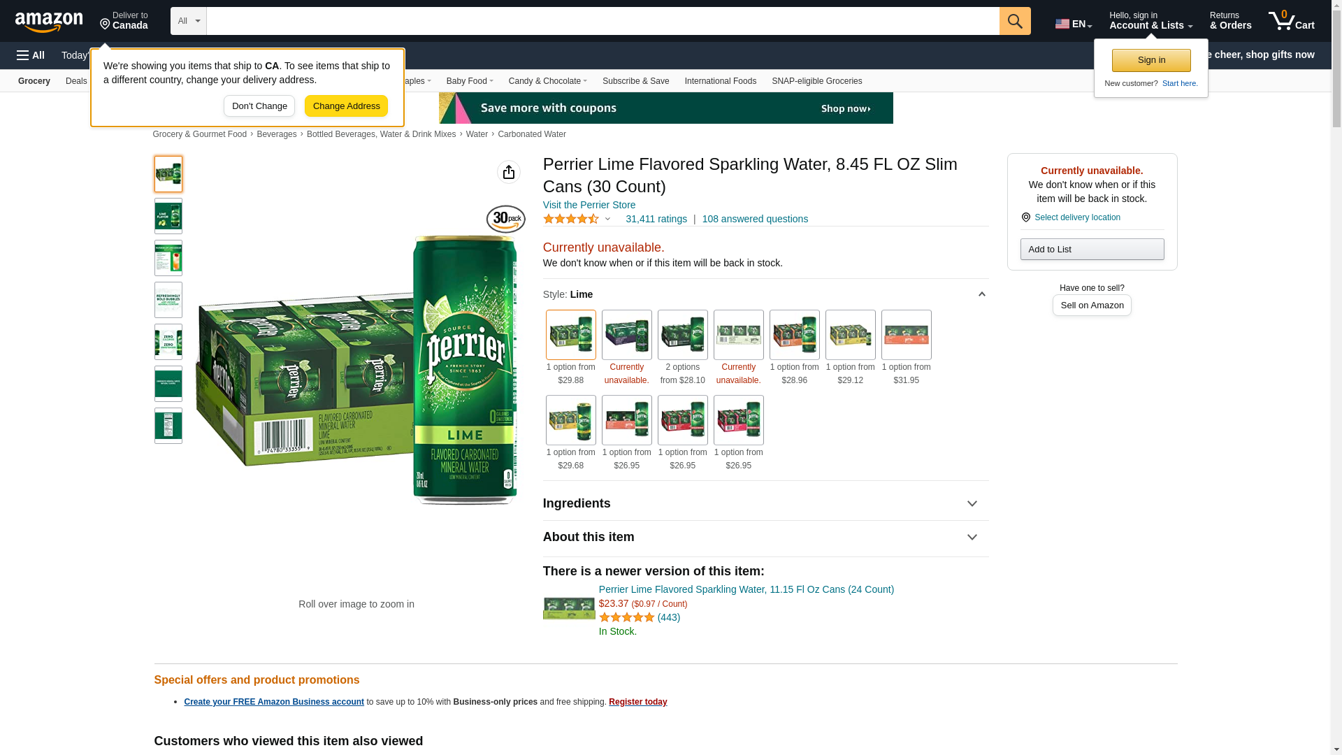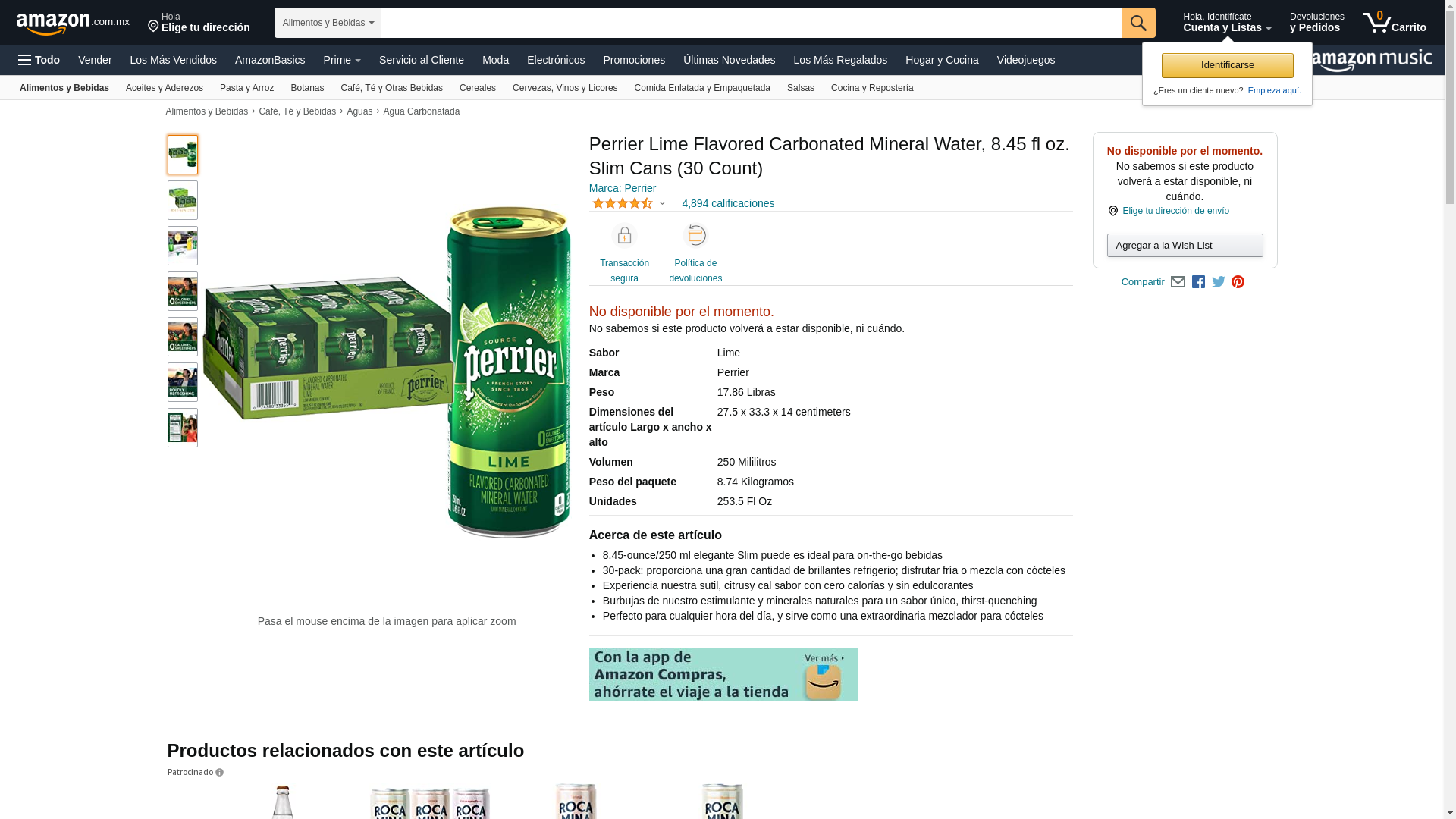 Perrier Lime Flavored Carbonated Mineral Water, 8.45 Fl Oz (30 Pack) Slim Cans
