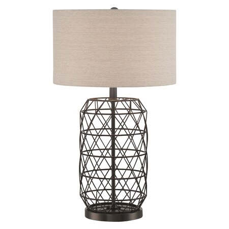 - TABLE LAMP, BLACK METAL/LINEN FABRIC SHADE, E27 CFL 25W/3WAY
