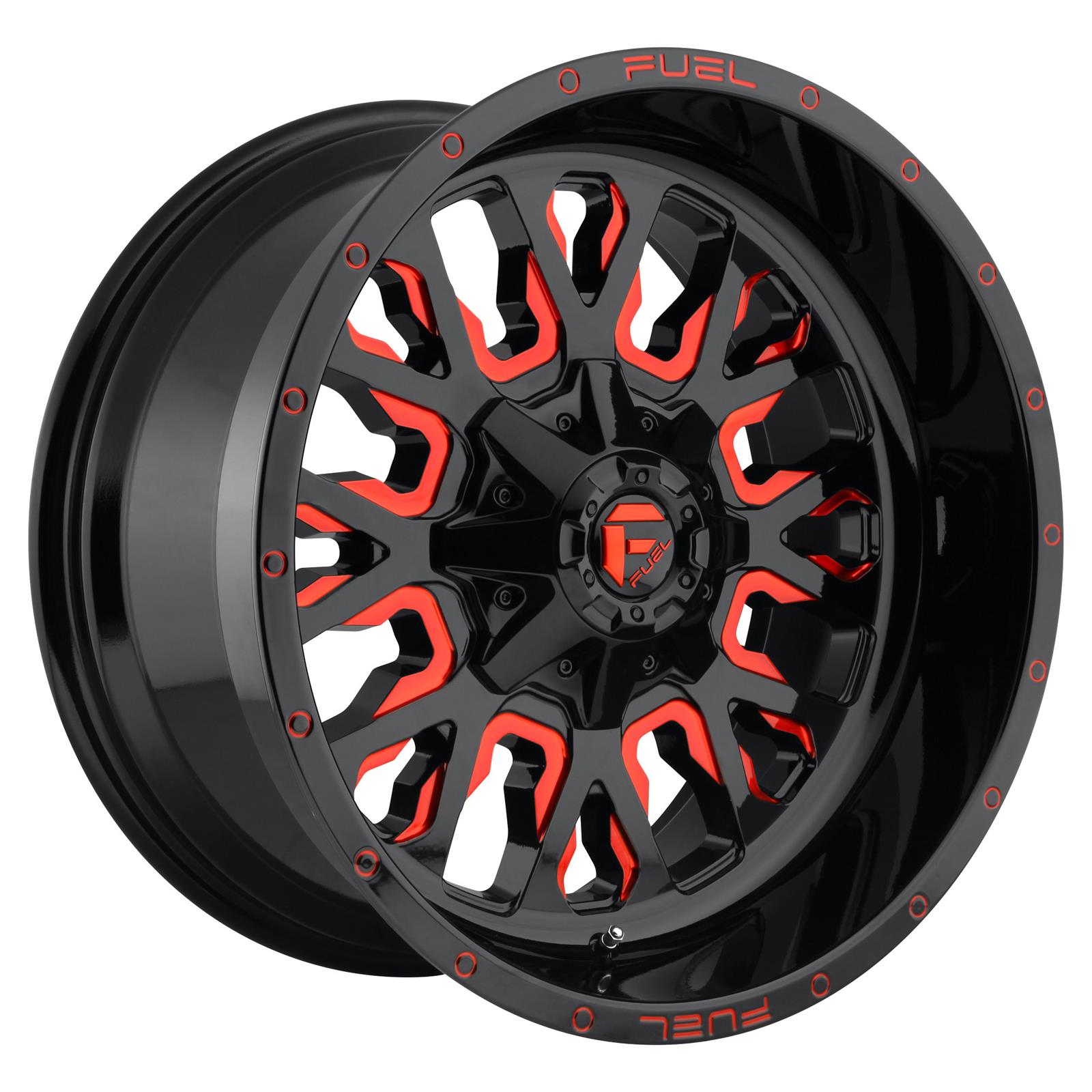 FUEL - D612 STROKE Gloss Black with Red Accents (22" x 12", -44 Offset, 5x150 Bolt Pattern, 110.1mm Hub) Lip Size, Concavity and overall Appearance, may vary depending on Vehicle and Wheel Size