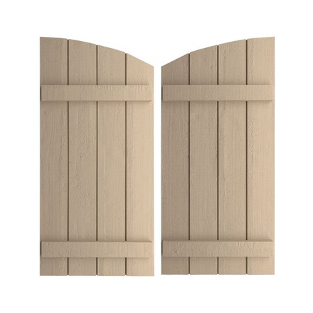 Ekena Millwork SHUBJL22X28RCPR (20 5/8" Low Side) Timberthane Four Joined Board-n-Batten w/Elliptical Top Faux Wood Shutters (Per Pair), Primed Tan, 22" W x 28" H