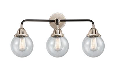 INNOVATIONS LIGHTING 288-3W-BPN-G204-6 Beacon Bath Vanity Light. Innovations Lighting Beacon 3 Light 24 inch Black Polished Nickel Bath Vanity Light. Collection: Nouveau 2. Material: Steel, Cast Brass, Glass. Metal Finish(Body): Black Polished Nickel. Metal Finish (Canopy/Backplate): Polished Nickel. Accent Color: Matte Black. Dimension(in): 10.125(H) x 24(W) x 7.25(Ext). Maximum Wattage Per Socket: 100. Bulb: (3)60W Medium Base(Not Included). Dimmable: Yes. Lumens: 220. Color Rendering Index(CRI): 99.9. Voltage: 120. Glass Shade Description: Seedy Globe. Glass Type: Seeded. Glass or Metal Shade Shape: Globe. Glass or Metal Shade Color: Seedy. Shade Material: Glass. Shade Size (Diameter x Height)(in): 6 X 5.75. Shade Fitter Measurement(in): 3.25 inch Fitter. Canopy Dimensions(in): 4.5. Backplate Dimensions(in): 4.5x0.75. Certification: UL & ETL, Damp Location.