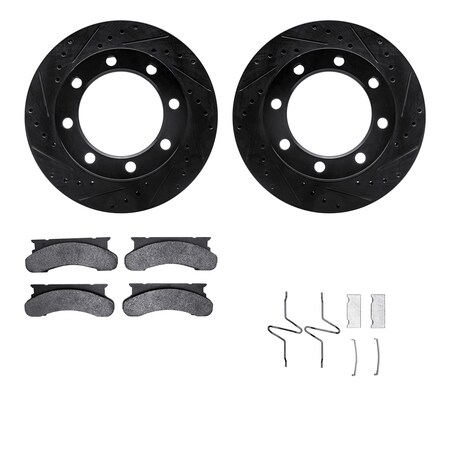 8512-99257, Rotors-Drilled and Slotted-Black w/ 5000 Advanced Brake Pads incl. Hardware, Zinc Coated