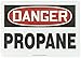 10" x 14" Aluminum OSHA Sign with Legend: "Danger Propane" Sign alerts employees and workers to areas that may contain propane. Aluminum (VA) Aluminum withstands wash downs, harsh elements, abusive conditions, and features good chemical, abrasion, and impact resistance. Aluminum is excellent for indoor and outdoor usage, making it ideal for a wide variety of industrial-strength applications. All Aluminum signs feature Accuform's TedLex liquid-based UV-protective coating, included at no charge. TedLex is perfect for indoor and outdoor use, prevents fading, and resists chemicals, abuse, and graffiti. Aluminum signs provide the strength of metal, yet never rust. Aluminum withstands wash downs, harsh elements, and abuse.