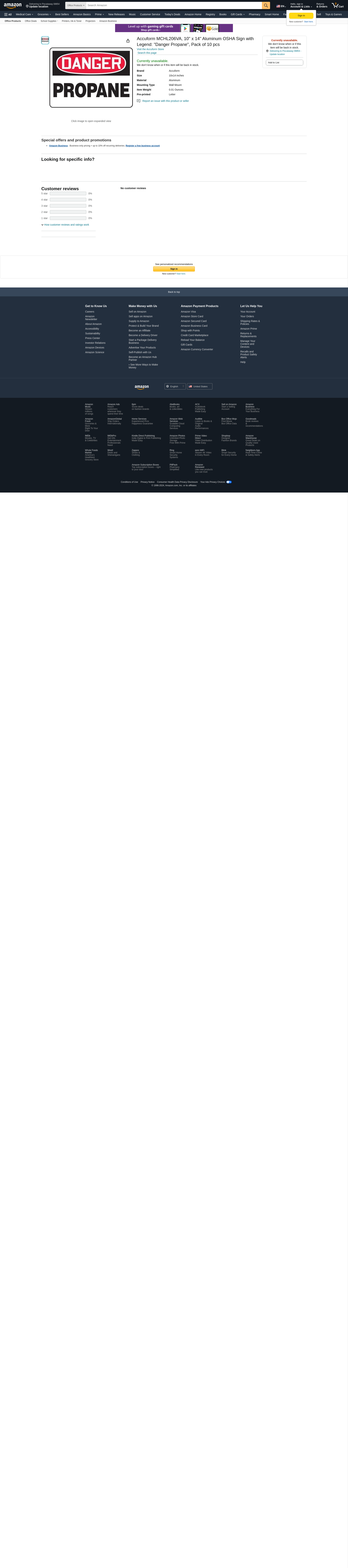 Accuform MCHL206VA, 10" x 14" Aluminum OSHA Sign with Legend: "Danger Propane", Pack of 10 pcs