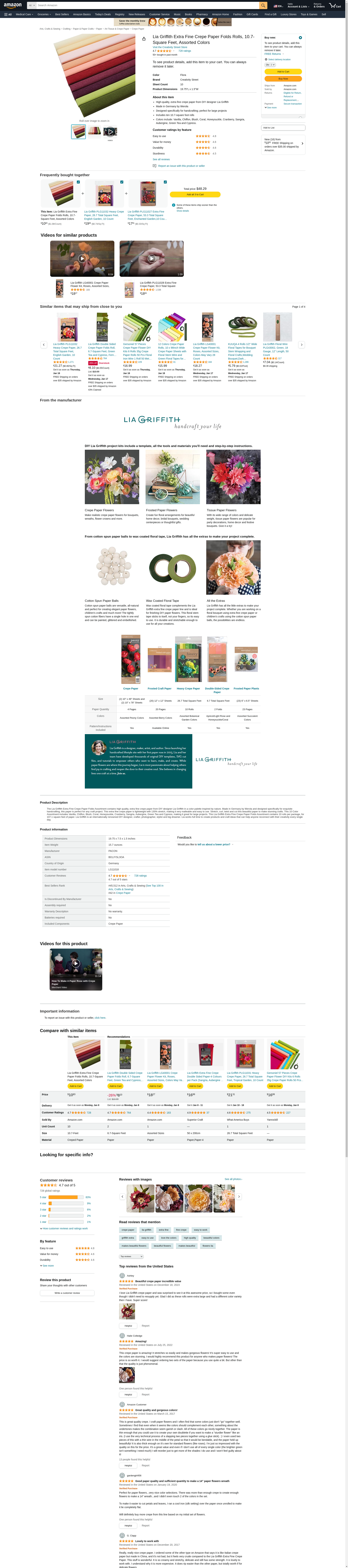 Lia Griffith Extra Fine Crepe Paper Folds Rolls, 10.7-Square Feet, Assorted Colors