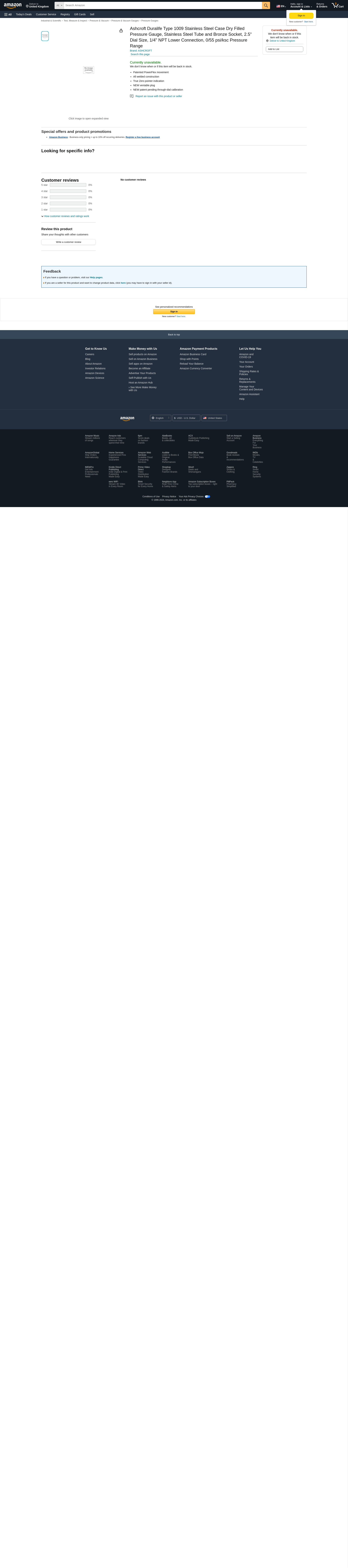 Ashcroft Duralife Type 1009 Stainless Steel Case Dry Filled Pressure Gauge, Stainless Steel Tube and Bronze Socket, 2.5" Dial Size, 1/4" NPT Lower Connection, 0/55 psi/ksc Pressure Range