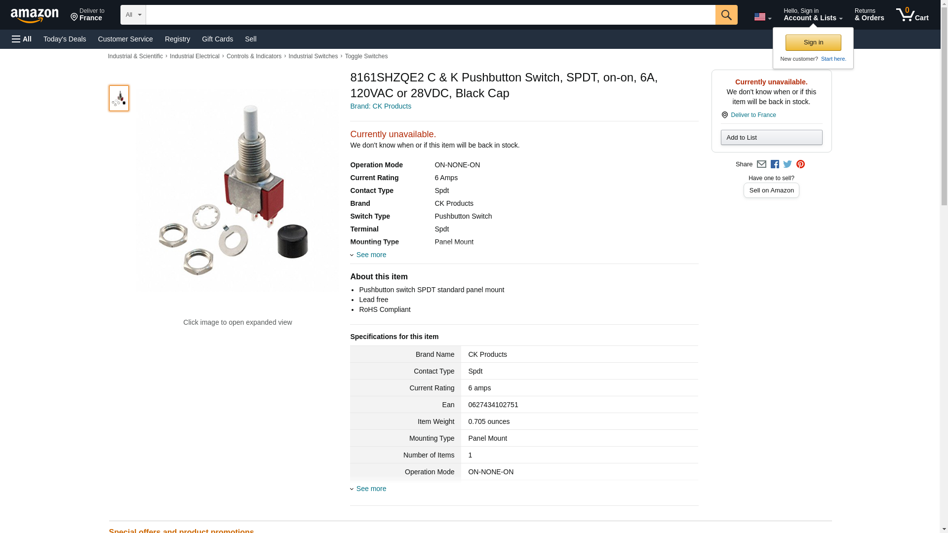 C & K COMPONENTS 8161SHZQE2 8060 Series Micro Mini SPDT On-On Solder Lug Pushbutton Switch - 2 item(s)