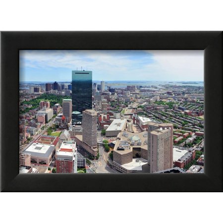 <ul> <li>Title: Boston Skyline Aerial View Panorama with Skyscrapers</li> <li>Artist: Songquan Deng</li> <li>Product Type: Framed Art Print</li> <li>Framed in SOHO Black</li> <li>Arrives ready-to-hang for fast, simple installation</li> <li>Framed Size: 14x10 in.</li> <li>Handcrafted in the USA</li> </ul>