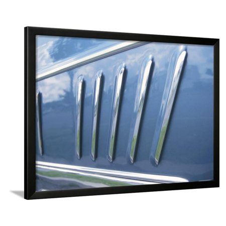 <ul> <li>Title: Detail of a Shiny Chrome Decoration on a Vintage Blue Car</li> <li>Paper Type: Photographic Print</li> <li>Product Type: Framed Art Print</li> <li>Framed in SOHO Black</li> <li>Arrives ready-to-hang for fast, simple installation</li> <li>Framed Size: 34x26 in.</li> <li>Handcrafted in the USA</li> </ul>
