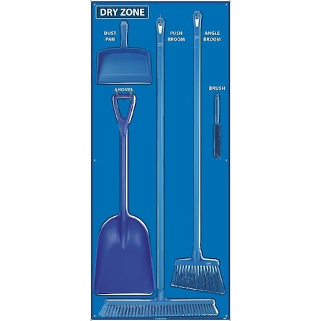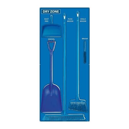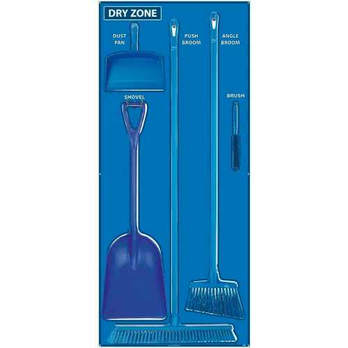 National Marker Dry Zone Shadow Board Combo Kit, Blue/White, 68 X 30, Alum Composite Panel- SBK129ACP Many manufacturing and food processing facilities are implementing 5S Shadow Boards to help reduce cost and down time by keeping cleaning supplies (and other tools), in a central location, neatly stored, and always accessible. Features: Ideal for basic maintenance and organizational use Includes Shadow Board and hardware for mounting tools Vikan brand tools included: 12' Angle broom, 24' Push Broom with 59' Handle, Dust pan, Bench brush, Single piece shovel with 14' blade. Lightweight, dual-layered aluminum with plastic core Protected by Sign Muscle liquid laminate Temperature range of -60° to 180° Product Details Description Dry Zone Shadow Board Combo Kit Material General Purpose Aluminum Composite Temperature Range -60° to 180 °f Color Family White on Blue Weights & Dimensions Width 30 in Height 68 in Thickness 0.118 in Weight 18 lbs