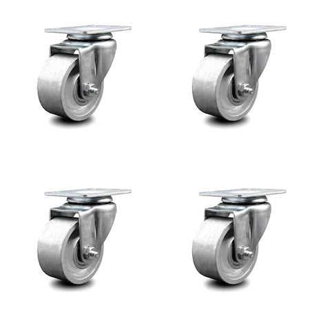 Swivel Caster Set of 4 with 3 Inch Semi Steel Cast Iron Wheel with Roller Bearing – 300 lbs. Capacity Per Caster – 3-1/8 Inch x 4-1/8 Inch Overall Top Plate – Service Caster Brand