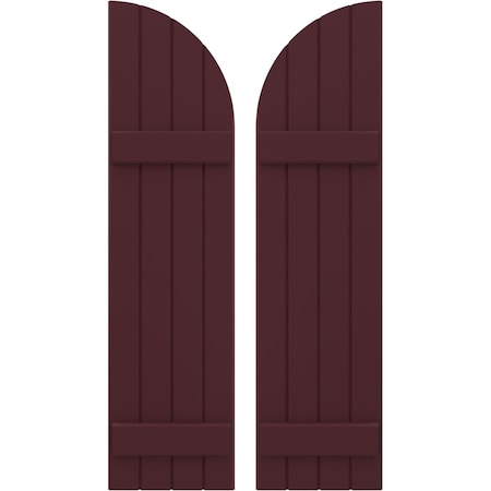 Ekena Millwork ARW101BQ414X75WRH Americraft Four 2 Exterior Real Wood Joined Board-n-Batten Shutters w/Arch Top (Per Pair), 14"W x 75"H, Wine Red