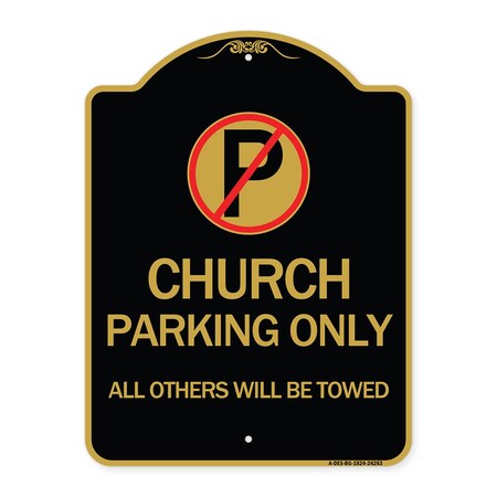 SignMission Designer Series Sign - Church Parking Only, All Others Will Be Towed with No Parking Symbol | Black & Gold 18" X 24" Heavy-Gauge Aluminum Architectural Sign | Made in The USA