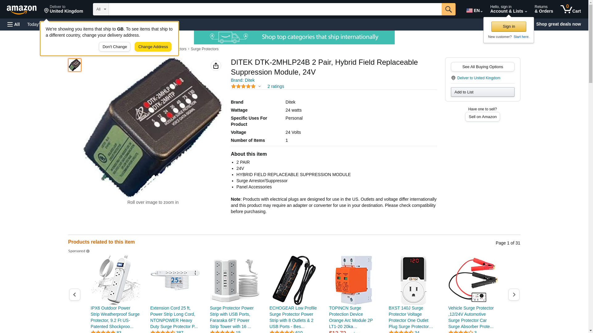 DITEK DTK-2MHLP24B Data & Signaling Circuit Surge Protection Module, Protects (2) Low Voltage Circuit Pairs Per Module, Multi-stage SAD Technology Provides the Best Possible Protection<br><br> DITEK's DTK-2MHLPB Series of low voltage surge protectors provide robust protection in a compact package. This series was designed for ease of installation, with convenient field-replaceable modules and a Snap-Track base system, allowing the installer to protect multiple circuits while utilizing a common ground point.<br><br> Key Features<br> - Protects (2) low voltage circuit pairs per module<br> - Multi-stage SAD technology provides the best possible protection<br> - Shorts to ground when compromised<br> Field-replaceable modular design with single point ground for fast and easy installation<br> - Suitable for use on both AC and DC low voltage circuits<br><br> Specifications<br> - Service Voltage: 24V<br> - MCOV: 33V<br> - Clamping Voltage: 39V<br> - Protection Modes: Common Mode (L-G)<br> - Surge Current Rating: 20,000A<br> - Max. Continuous Current: 5A<br> - Failure Mode: Short to Groun<br> - Base Connection Method: Hardwired terminals, 30-12 AWG<br> - Module Connection Method: Edge card into mounting base<br> - Housing: ABS<br> - Operating Temperature: -40°F - 158°F (-40°C - 70°C)<br> - Maximum Humidity: 95% non-condensing<br> - Dimensions: 2.1"L x 1.4"W x 1.9"H (53 x 36 x 48 mm)<br> - Weight: 1.2 oz (34 g)<br><br>
