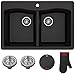 KRAUS KGD-52BLACK FORTEZA 33 INCH DUAL MOUNT 50/50 DOUBLE BOWL GRANITE KITCHEN SINK, BLACK