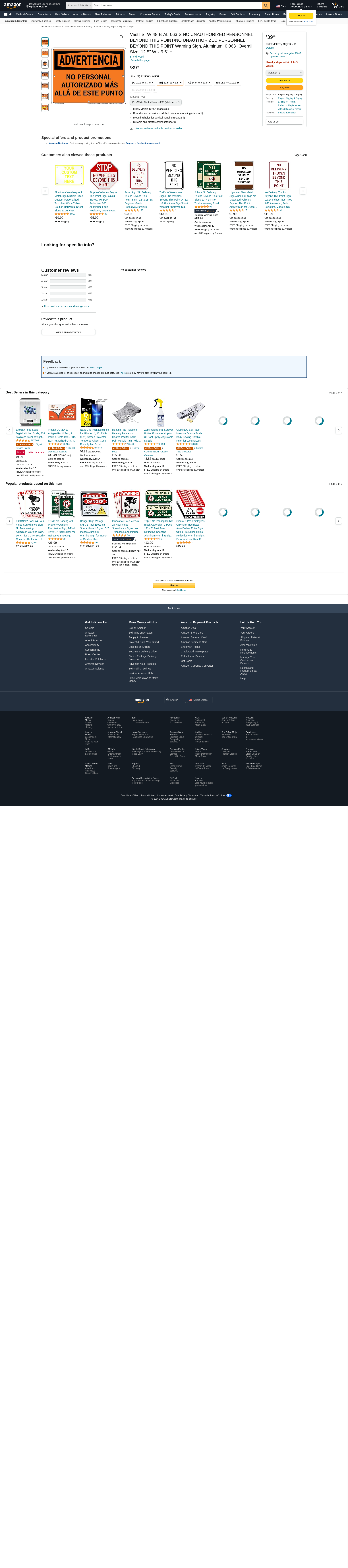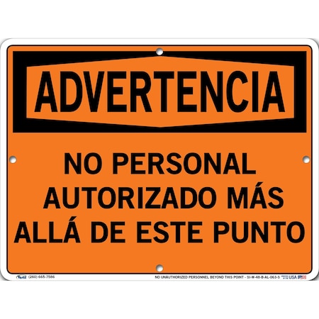Vestil SI-W-48-B-AL-063-S NO UNAUTHORIZED PERSONNEL BEYOND THIS POINT/NO UNAUTHORIZED PERSONNEL BEYOND THIS POINT Warning Sign, Aluminum, 0.063" Overall Size, 12.5" W x 9.5" H