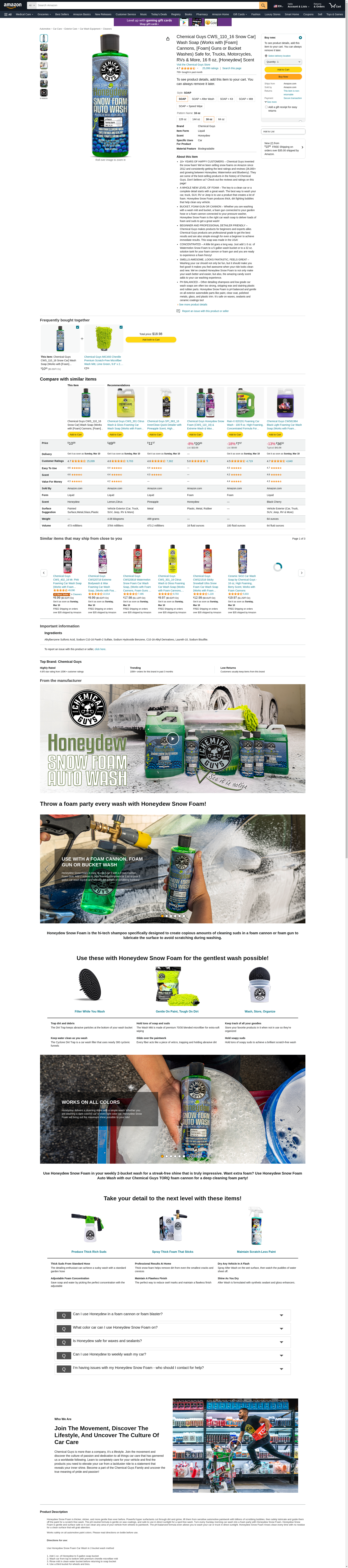 Buy Chemical Guys Honeydew Snow Foam Auto Wash Cleansing Shampoo - 16oz - CWS_110_16 for 52.39 at Armageddon Turbo & Performance