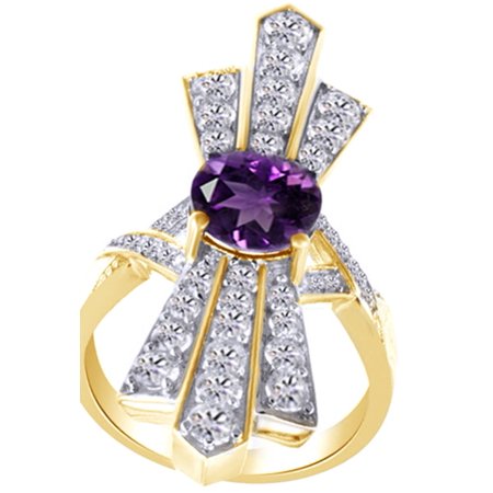 <ul> <li>Metal Type : 14k Yellow Gold Over Sterling Silver GUARANTEED, Authenticated with a 925 Stamp</li> <li>Gem Type :- Simulated Amethyst (Lab Created); Cubic Zirconia (Lab Created)</li> <li>Stone Shape :- Round Shape</li> <li>Stone Setting type :- prongs</li> <li>Stone Clarity :- VVS1-VVS2 & VVS1-VVS2, Stone Color :- Violet; White</li> </ul>