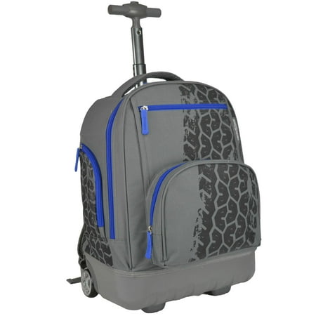 <ul liststyletype="Circle"> <li>100% Polyester</li> <li>World's lightest rolling backpack</li> <li>Stylish and trendy color accents</li> <li>Polycarbonate molded bottom makes it light and strong</li> <li>Soft and quiet wheels for easy maneuverability</li> <li>Telescopic push button handle system</li> <li>Padded and riveted grip handle</li> <li>Air mesh back system and padded shoulder straps</li> <li>Roomy compartment and multiple pockets</li> </ul>