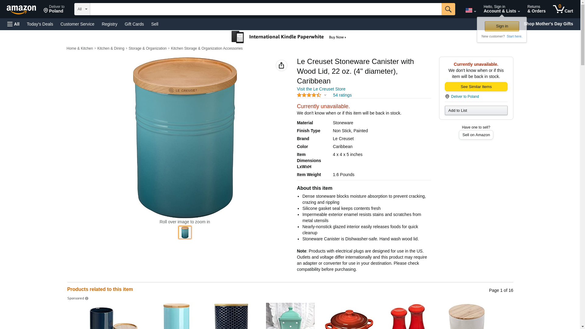 Le Creuset Stoneware 4" Canister with Wood Lid, 22 oz, Caribbean