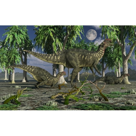 Mark Stevenson/Stocktrek Images Stretched Canvas Art - A group of Altirhinus dinosaurs. - Large 36 x 23 inch Wall Art Decor Size.