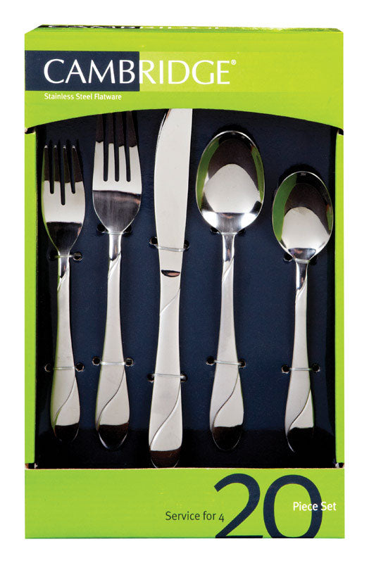 Cambridge Swirl Sand Piece Flatware Set, 20 Count, Silver