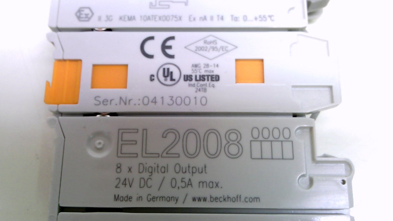 GUARANTEED - Beckhoff EL2008 8x Digital Output Module 24V DC As shown in pictures. Sold in perfect working condition. All of our items are in the original manufacturers packaging, unless otherwise shown. All of our electronic parts are guaranteed and come with a 60 DAY REPLACEMENT WARRANTY. 100% Money Back Guarantee. FAST FREE SHIPPING! For USA and CANADA. EXPRESS & OVERNIGHT SHIPPING AVAILABLE UPON REQUEST IF NEEDED.